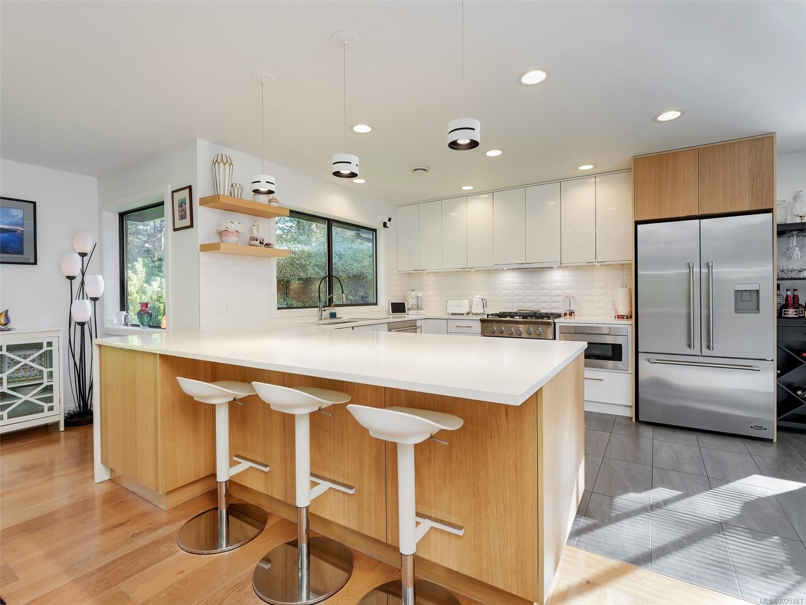 Absolutely gorgeous sunny RANCHER (all on one level) situated in possibly the nicest location of Broadmead. This recently renovated home is ready to move in and offers 3 bedrooms, 2 beautiful baths on main level living in a spacious open layout with a double car garage. From the private front patio, you enter into the bright spacious foyer that proceeds to the open floor plan of the living and dining room. This features a gas fireplace, hardwood floors and access to your private patio.The bright and airy kitchen offers quartz countertops, gas range ,heated tile flooring that is open to the family room featuring a fireplace and sliding doors that lead out to the front patio area. The primary bedroom has hardwood floors, walk in closet and recently renovated ensuite with a walk in shower and heated flooring. The two additional bedrooms are situated so that everyone in the family can enjoy their privacy. New Heat pump, new hot water tank and so much more. Welcome home!