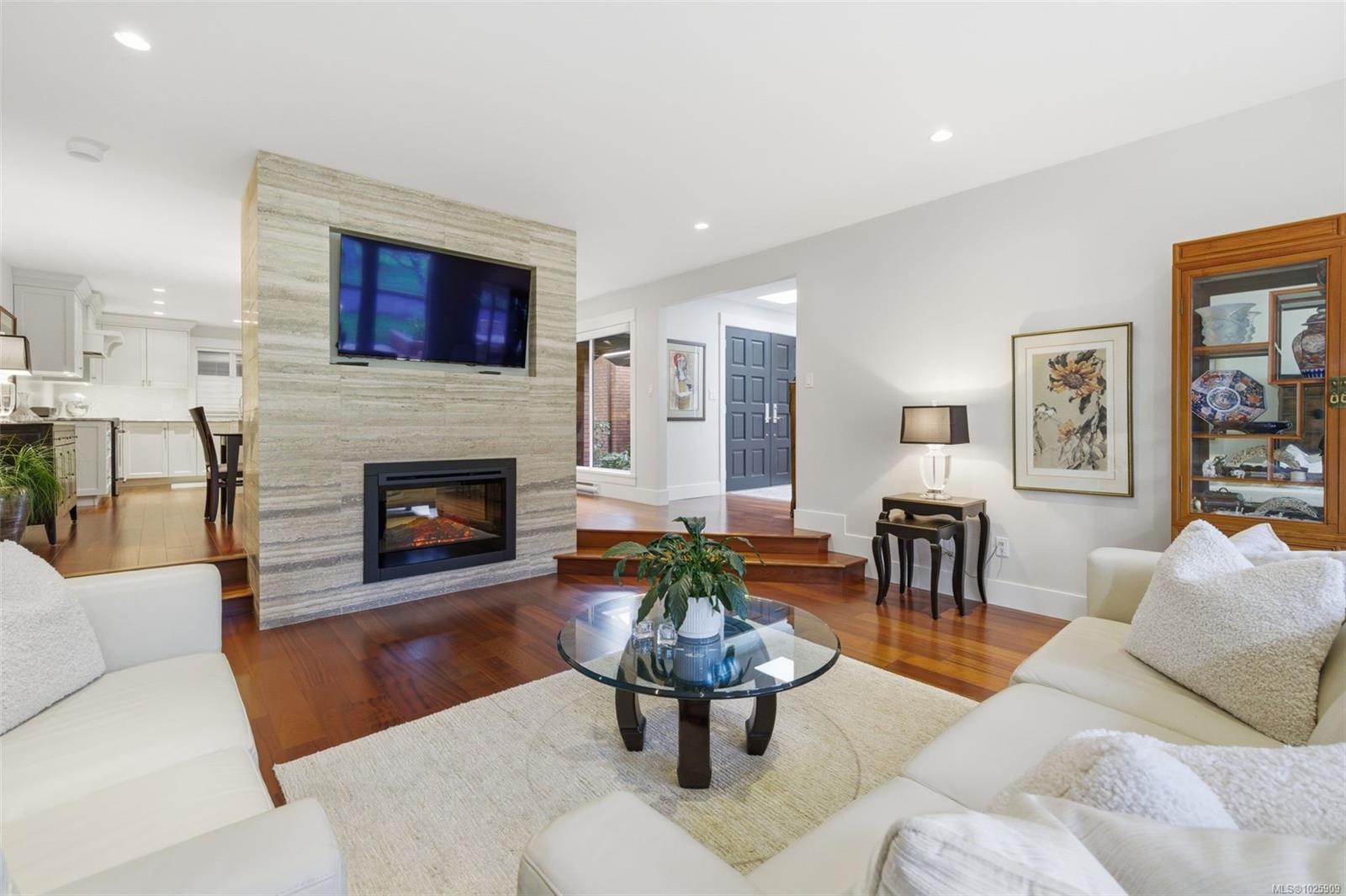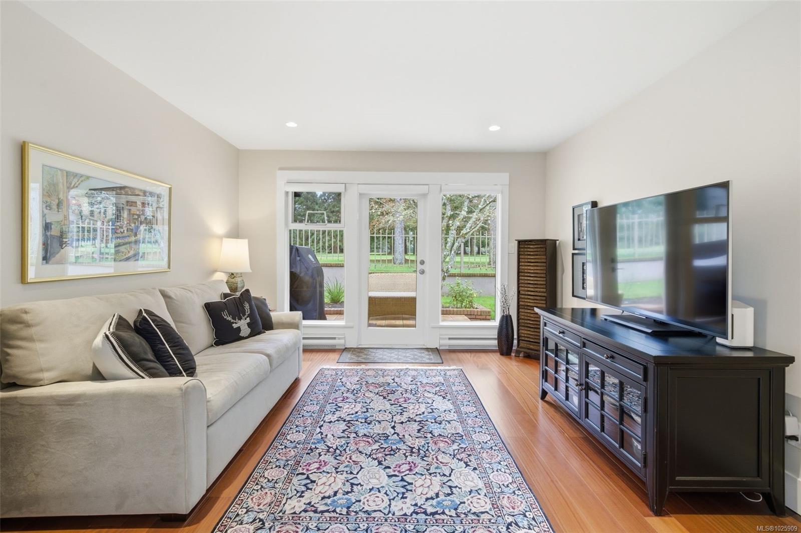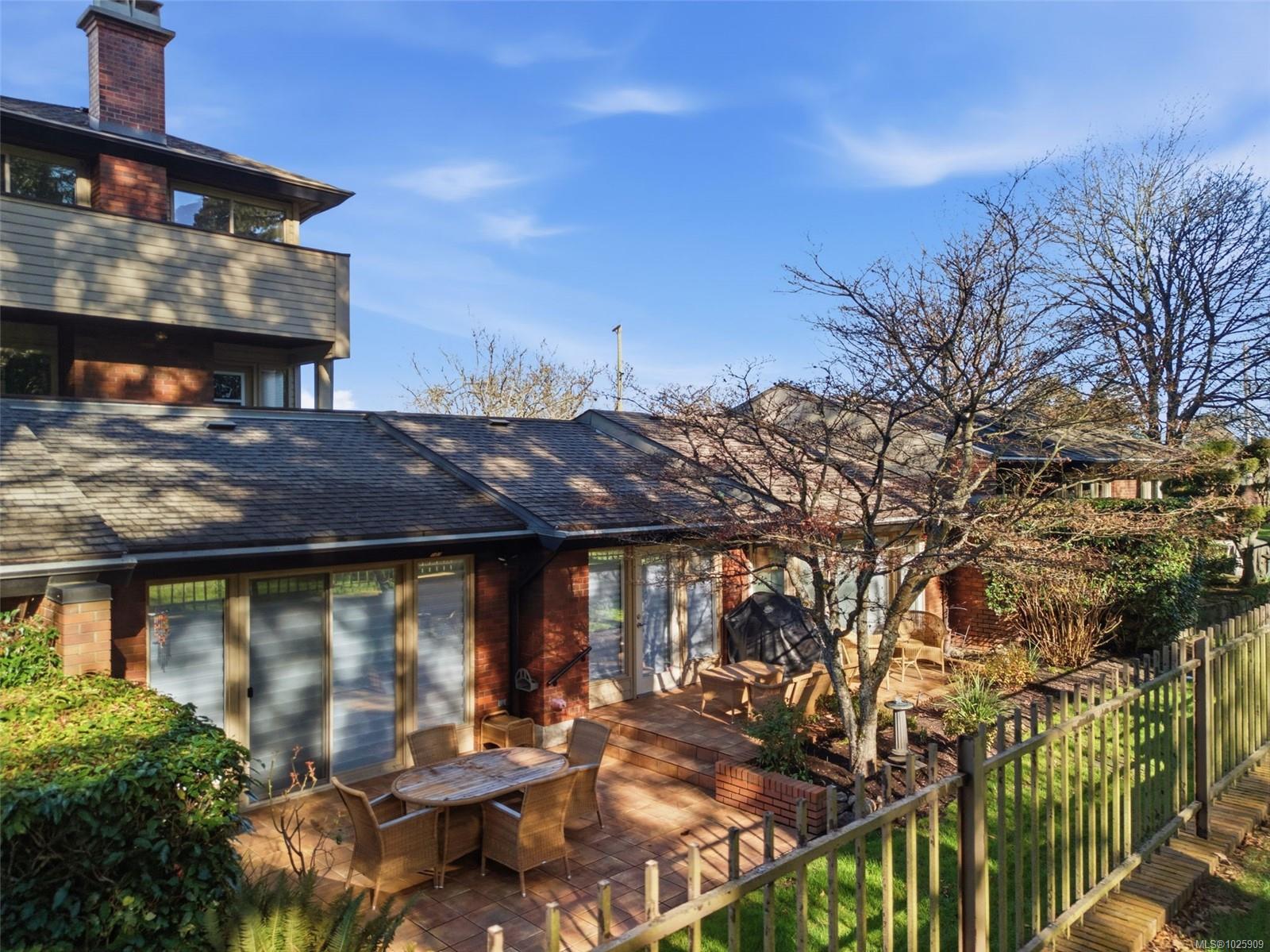 Downsize without compromise in this meticulously renovated, 1,638 sq. ft. single-level townhome in the prestigious gated community of Uplands Estates. Exceptional craftsmanship defines every corner, from the skylit entry to the sunken living room and open-concept chef’s kitchen featuring custom cabinetry, solid surfaces, and an induction range. Enjoy a private southeasterly patio overlooking the 7th fairway of Uplands Golf Club. This versatile 2-bedroom (or 1+den) layout includes a primary suite with a 3-piece ensuite and soaker tub, plus a second 3-piece bath with a walk-in shower. High-end finishes include top-tier window coverings and a lifetime-warranted hot water tank. Complete with a separate double garage and extra storage, this home offers the ultimate lock-and-go lifestyle in Oak Bay.